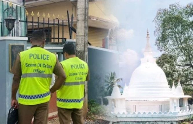 விகாரை பீடாதிபதி கல்னாவே தேரரின் வரவேற்பறையில் உள்ள ஜன்னல் ஒன்றின் மீது துப்பாக்கிச் சூடு நடத்தப்பட்டுள்ளது.