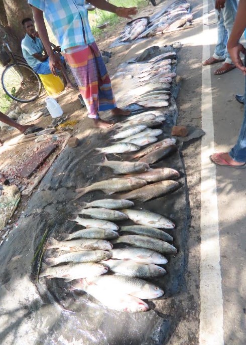 சுமார் 5 முதல் 25 கிலோ எடையுள்ள பாரிய கணையான் மீன் இனங்களே இவ்வாறு மீனவர்கள் பிடித்து வருகின்றனர்.