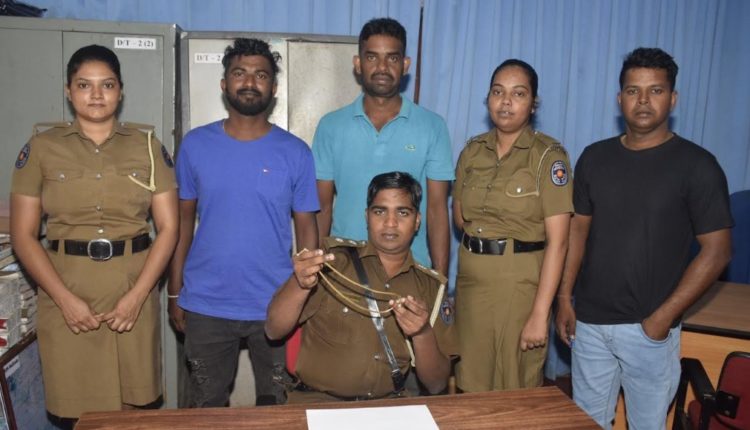 கைது செய்யப்பட இரு சந்தேகநபர்களிட் இருந்து, 25 பவுண் தாலி கொடி ஒன்றும், 4 பவுண் நகை ஒன்றும் மீட்கப்பட்டுள்ளது.