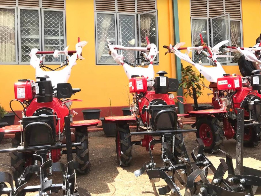 இரண்டு சக்கர உழவு இயந்திர பொருத்தி நிலம் பண்படுத்தும் (கலப்பை) இயந்திரம், மற்றும் நீர் இறைக்கும் இயந்திரம் உட்பட்ட விவசாய உபகரணங்கள் வழங்கப்பட்டன.