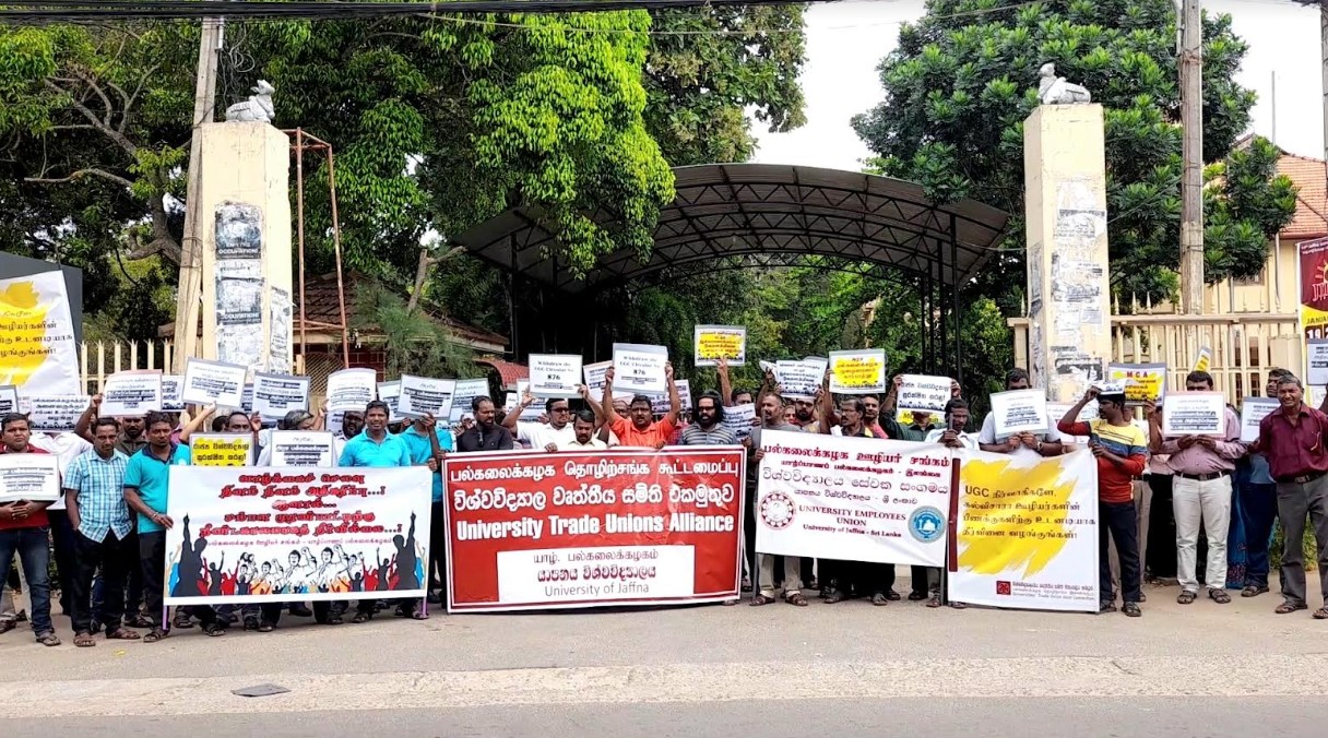 பல்கலைக்கழக கல்விசாராப் பணியாளர்களின் சம்பள முரண்பாடு, சம்பள அதிகரிப்பு மற்றும் அவர்களைப் பாதிக்கும் பிரச்சனைகளிற்கு உரிய கால அவகாசங்கள் வழங்கப்பட்டும், பல்கலைக்கழக மானியங்கள் ஆணைக்குழுவும் அரசாங்கமும் இதுவரை தீர்வினை வழங்காதமைக்கு எதிர்ப்புத் தெரிவித்தும் உடனடித் தீர்வினை வேண்டியும் வேலைநிறுத்தத்தில் ஈடுபடுவது என்றும் அதேசமயம் நாளைய தினம் வியாழக்கிழமை பல்கலைக்கழக மானியங்கள் ஆணைக்குழுவின் முன்னால் கவனயீர்ப்பு ஆர்ப்பாட்டம் ஒன்றினையும் முன்னெடுப்பது என்றும் தீர்மானிக்கப்பட்டுள்ளது.