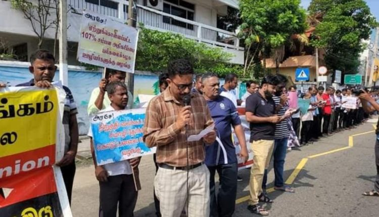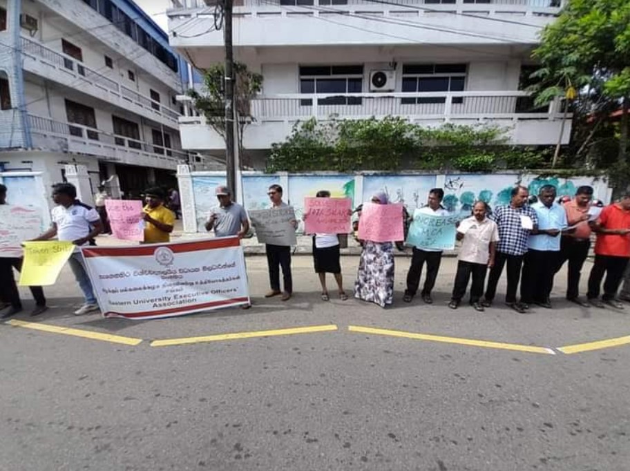 கிழக்குப் பல்கலைக்கழக ஊழியர் சங்கம் மற்றும் கிழக்குப் பல்கலைக்கழக நிருவாக உத்தியோகத்தர்கள் சங்கம் என்பன இணைந்து முன்னெடுத்த இந்த ஆர்ப்பாட்டம் மட்டக்களப்பு – கல்முனை பிரதான வீதியில் நடைபெற்றது.