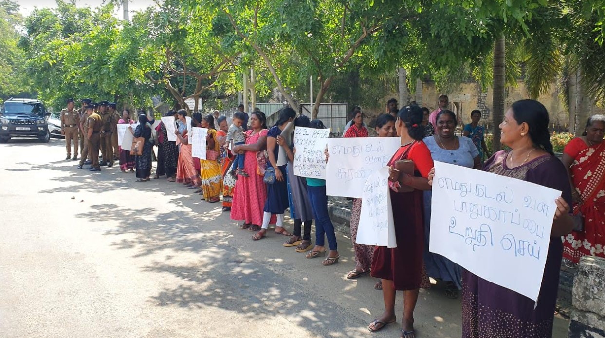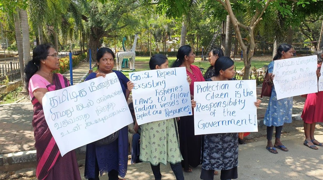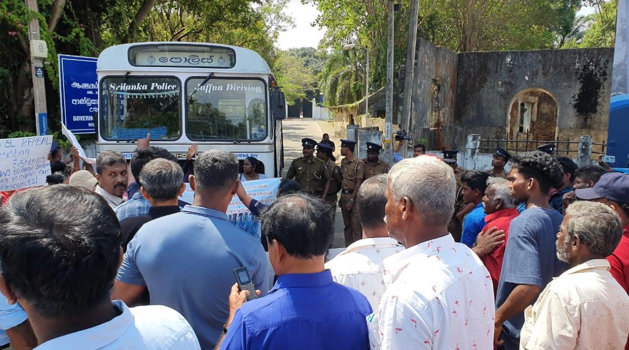 வட மாகாண கடற்தொழிலாளர் இணையம் மற்றும் தேசிய மீனவர் ஒத்துழைப்பு இயக்கம் மற்றும் இலங்கை மீனவர் மக்கள் தொழிற்சங்கம் உள்ளிட்ட மீனவ அமைப்புக்கள் இணைந்து யாழ் மாவட்டச் செயலகம் முன்பாக கவனயீர்ப்பு போராட்டத்தை ஆரம்பித்தனர்.