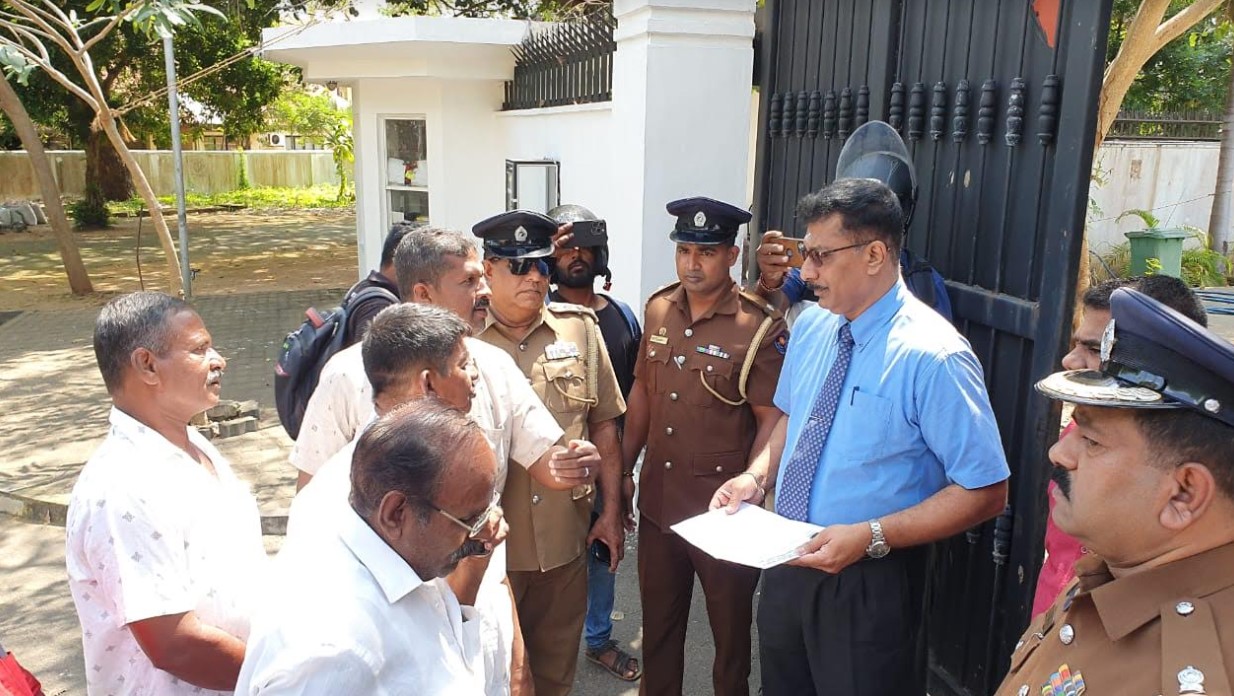 தூதரகம் முன்பாக பேரணியை செல்லவிடாது, பொலிஸார் இடைமறித்ததுடன் மீனவ அமைப்புக்களின் எட்டு பிரதிநிதிகளை சந்திப்பதற்கு அனுமதி வழங்கினர். இதற்கமைய தூதரகத்திற்குள் சென்ற பிரதிநிதிகள் தங்களது கோரிக்கைகள் அடங்கிய மகஜர் ஒன்றினை கையளித்தனர்.