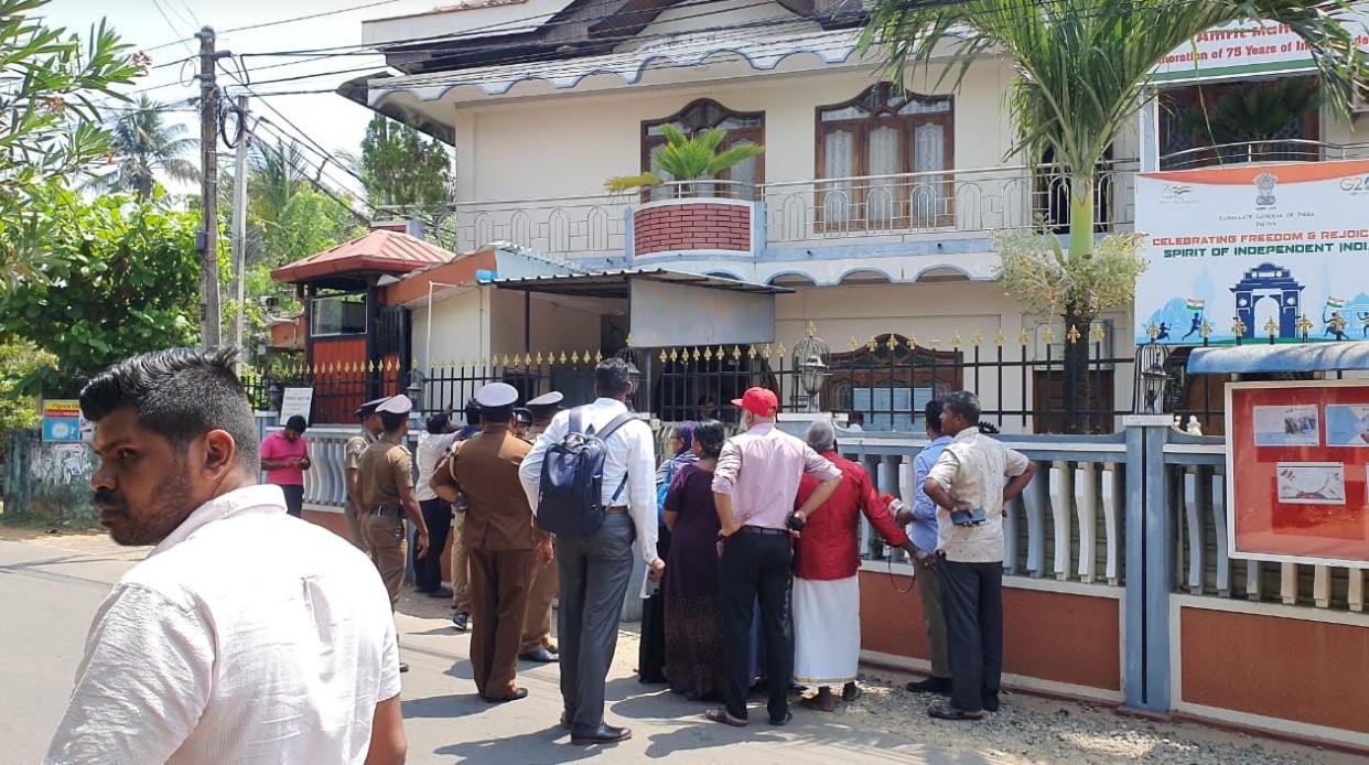 இதனைத் தொடர்ந்து யாழிலுள்ள இந்திய துணைத் தூதரகம் வரை பேரணியாகச் சென்றனர். இதன் போது இந்திய துணை தூதரகத்திற்கு செல்லும் வழியில் பொலிஸார் இடைமறித்ததால் பெரும் பரபரப்பு ஏற்பட்டது.