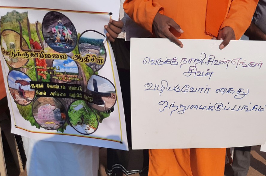 வவுனியா – வெடுக்குநாறிமலை ஆதிலிங்கேஸ்வரர் ஆலயத்தில் பொலிஸ் அராஜகத்தை கண்டித்து இன்று பிற்பகல் யாழ்ப்பாணம் நல்லூரில் போராட்டமொன்று முன்னெடுக்கப்பட்டது.