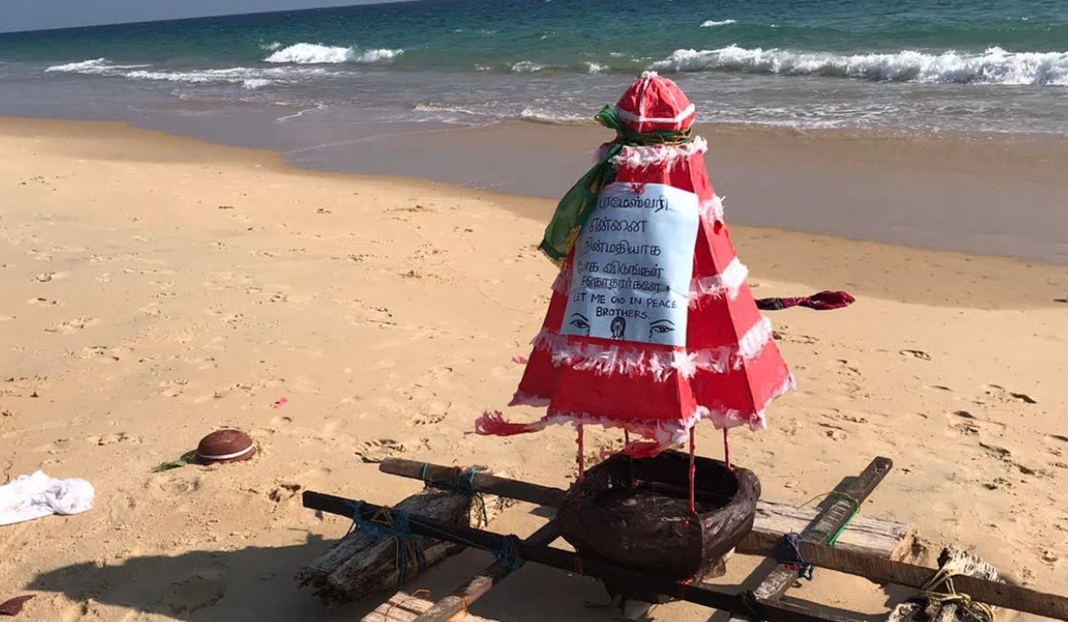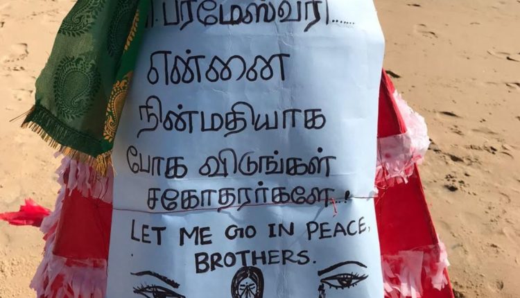 குறித்த மிதவையில், “பரமேஸ்வரி என்னை நிம்மதியாக போக விடுங்கள் சகோதரர்களே” போன்ற வாசகங்கள் எழுதப்பட்டுள்ளது.