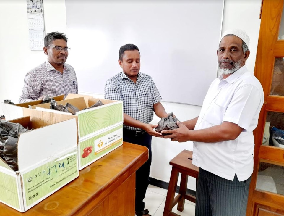 சமூக செயற்பாட்டாளர் அஸ்மி யாஸீன் அவர்களது சார்பில் அமைப்பின் முக்கியஸ்தர்களான சம்மாந்துறை தேசிய பாடசாலையின் பிரதி அதிபரும் அமைப்பின் ஆலோசகருமான எம்.சி. பர்ஷான் மற்றும் சமூக மேம்பாட்டுக்கான அமைப்பின் அமைப்பாளர் ஏ. அபூபக்கர் ஆகியோர் குறித்த ஈத்தம் பழங்களை நவ்ஸ் அமைப்பின் தலைவர் எம்.ஏ. றிபாயிஸ் முகம்மட் ஊடாக ஊழியர்களுக்கு வழங்கி வைத்தனர்.