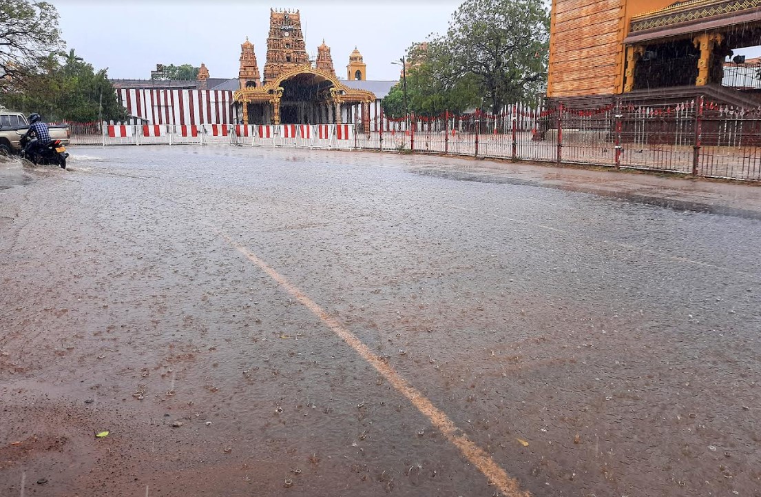 யாழ்ப்பாணத்தில் பல்வேறு பகுதிகளிலும் இன்றைய தினம் புதன்கிழமை காலை முதல் மதியம் வரையில் கடும் மழை பொழிந்தது.