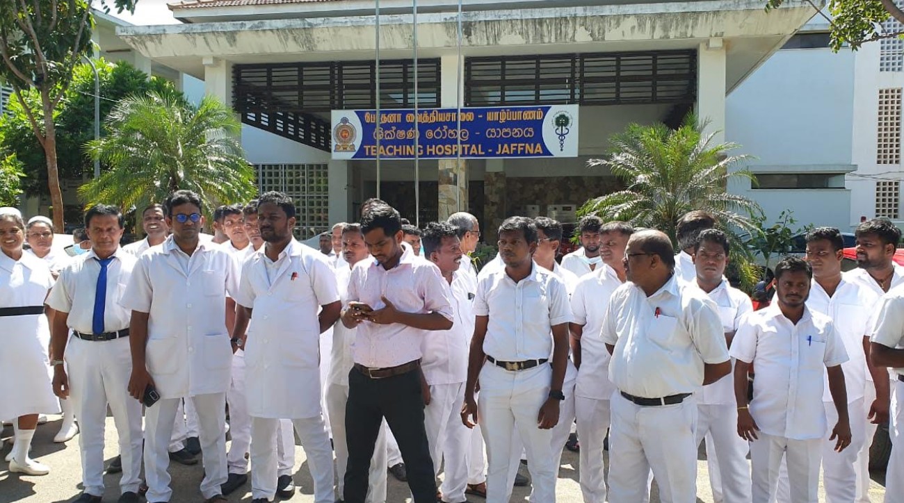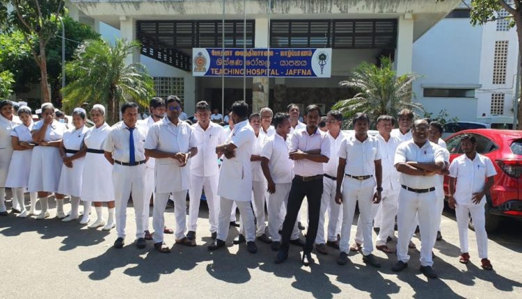 அதற்கு ஆதரவாக யாழ்.போதனா வைத்தியசாலையில் போராட்டம் முன்னெடுக்கப்பட்டது. காலை 08 மணி முதல் மதியம் 12 மணி வரையில் சேவையில் இருந்து விலகி தொழிற்சங்க நடவடிக்கையில் ஈடுபட்டனர்.
