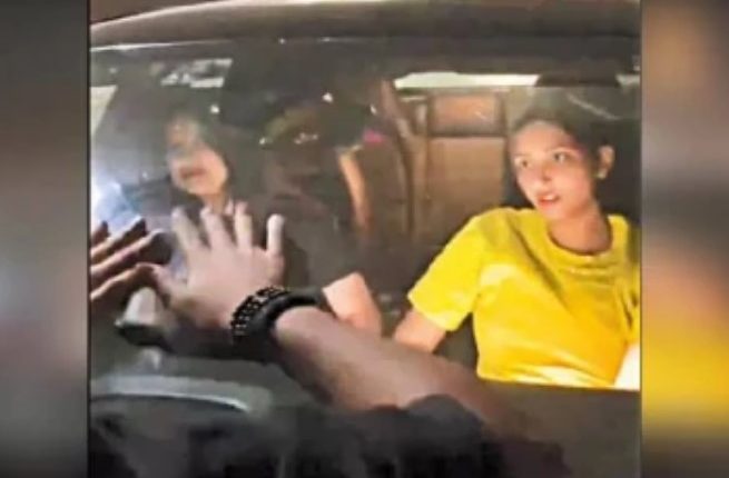 அந்த பதிவில், காருக்குள் இருக்கும் 2 இளம் பெண்கள் காரை இயக்குகிறார்கள். காரின் முன்பகுதியில் படுத்திருக்கும் ஆண், கைகளை கூப்பி அவர்களிடம் கெஞ்சுவதுபோல அதில் தெரிகிறது. மேலும், உள்ளே இருக்கும் பெண்கள் அவர்களுக்குள் ஏதோ பேசிக் கொண்டே காரை நிறுத்தாமல் ஓட்டிச் செல்கிறார்கள்.