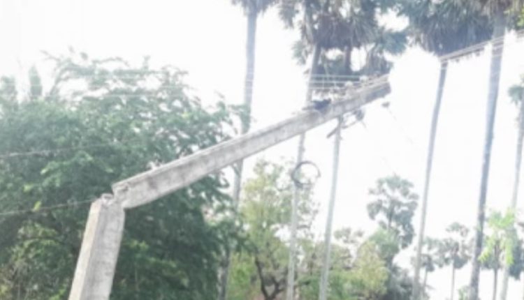 இதன்போது சங்கானை 07ஆம் கட்டையிலுள்ள தனியார் காணியொன்றில் நின்ற பனை மரம் திடீரென முறிந்து வீழ்ந்துள்ளது. இதனால், இரு மின்கம்பங்கள் முற்றாக சேதமடைந்துள்ளதுடன் அப்பகுதியில் மின்சாரமும் தடைப்பட்டுள்ளது.