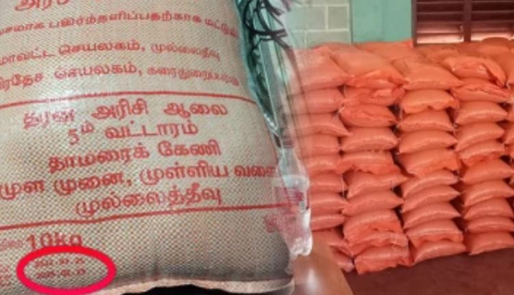 அரசமானிய நிகழ்ச்சித்திட்டம் மூலம் முல்லைத்தீவு (Mullaitivu) கரைதுறைப்பற்று பிரதேச செயலகத்திற்குட்பட்ட மக்களுக்கு கலாவதியான அரிசி பொதி வழங்கப்பட்டுள்ளது.