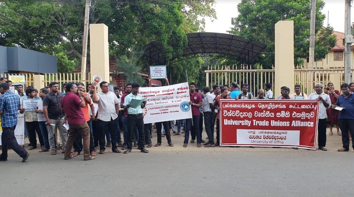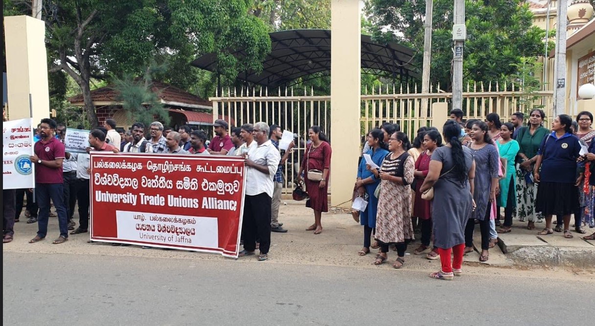 யாழ்ப்பாணப் பல்கலைக்கழகத்தில் பல்கலைக்கழக ஊழியர் சங்கம் மற்றும் மாணவர் ஒன்றியப் பிரதிநிதிகளின் பங்கேற்புடன் கவனயீர்ப்பு ஆர்ப்பாட்டமொன்று நடைபெற்றது.