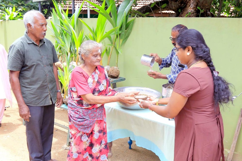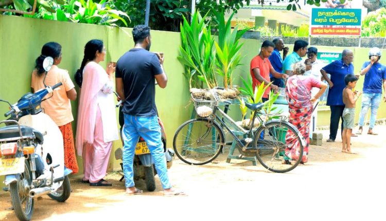 தமிழ்த் தேசிய பசுமை இயக்கத்தின் கஞ்சி பரிமாறுதலின்போது தென்னம்பிள்ளைகளும் வழங்கி வைக்கப்படடன.