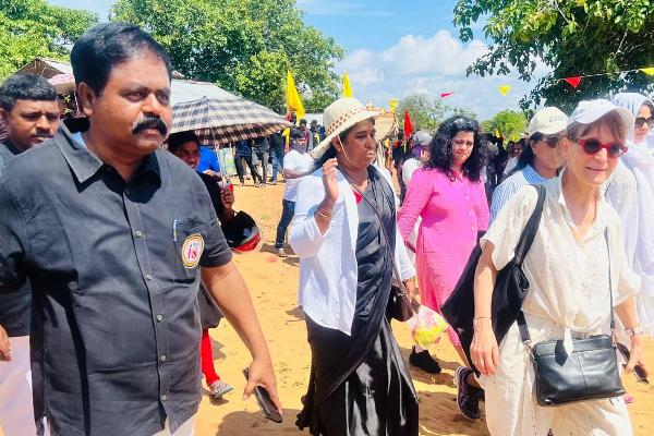 முள்ளிவாய்க்கால் நினைவு முற்றத்தில் சிறீதரன் எம்.பியுடன் கலந்துரையாடிய அக்னெஸ் கலமார்ட்
