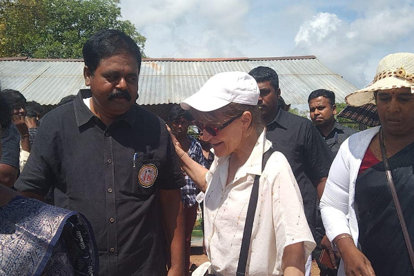 முள்ளிவாய்க்கால் நினைவு முற்றத்தில் நேற்று  அஞ்சலி செலுத்த வந்திருந்த சர்வதேச மன்னிப்புச் சபையின் செயலாளர் நாயகம் அக்னெஸ் கலமார்ட், இலங்கைத் தமிழரசுக் கட்சியின் நாடாளுமன்ற உறுப்பினர் சிவஞானம் சிறீதரனுடன் (S. Shritharan) கலந்துரையாடியுள்ளார்.
