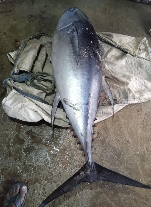 49 கிலோ நிறையுடைய பல கோடி பெறுமதியானது என நம்பப்படும் நீல தூணா அல்லது உள்ளுரில் நீல ஹெலவள்ளா(ஹென்டா) சிக்கியது.