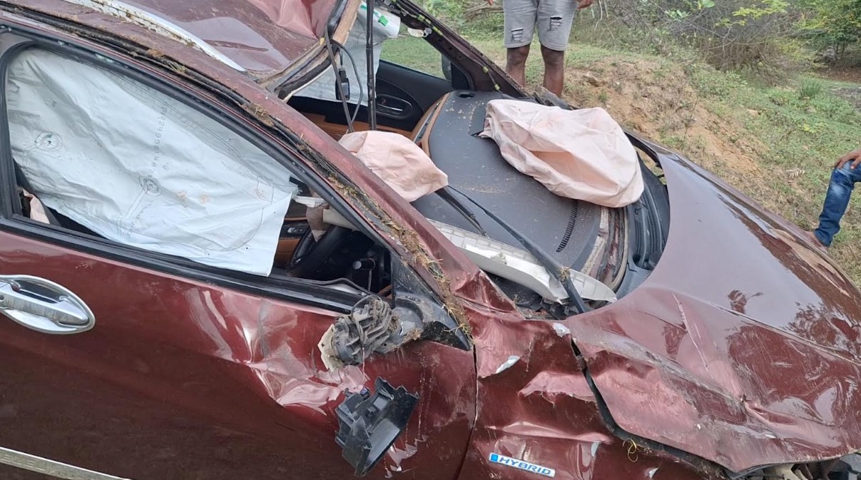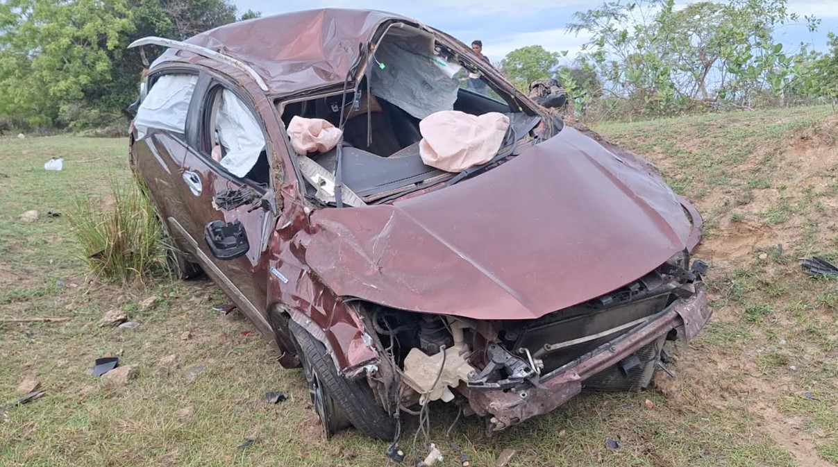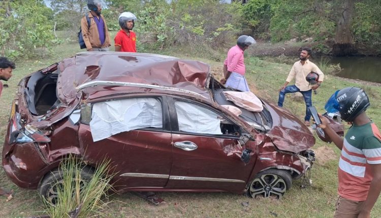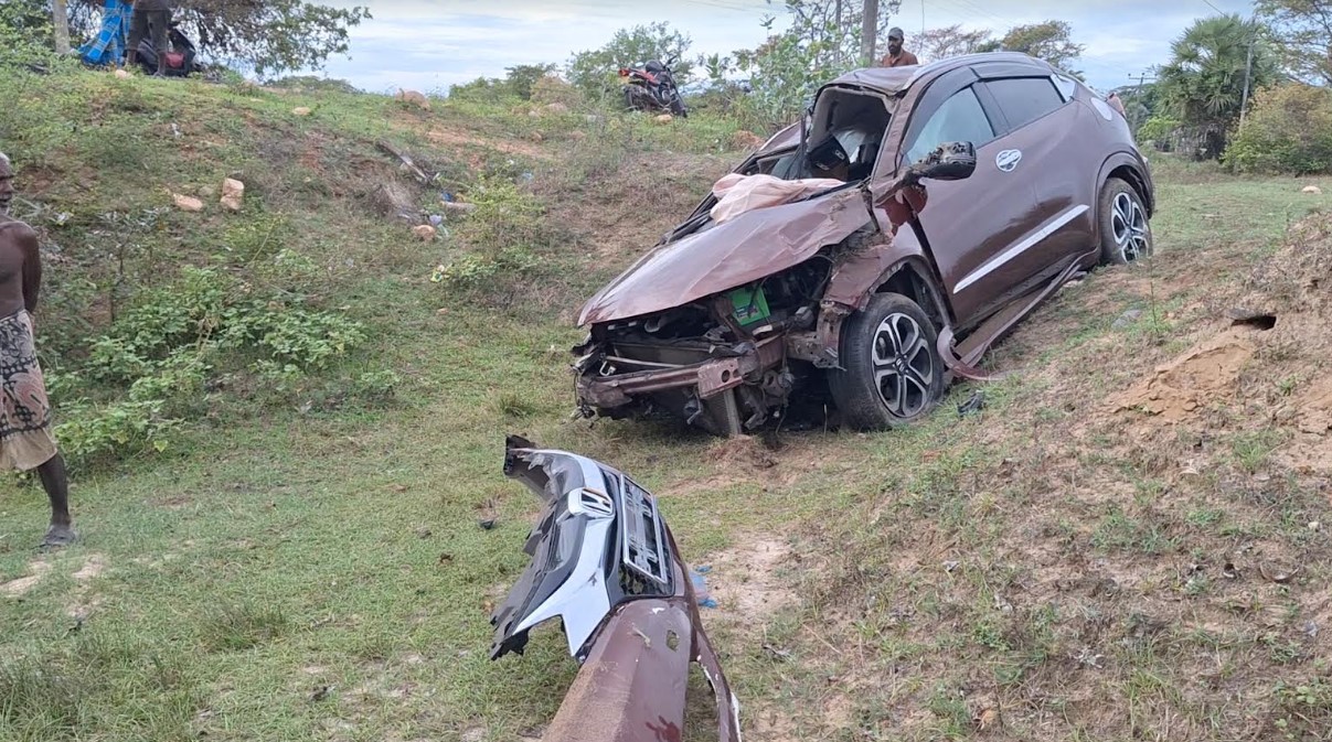 பருத்தித்துறையை சேர்ந்த கணவன் – மனைவி மற்றும் அவர்களது இரு பிள்ளைகளுடன் யாழ்ப்பாணத்தில் இருந்து திருகோணமலை ஊடாக மட்டக்களப்பு நோக்கி பயணித்துக்கொண்டிருந்த வேளை , திருகோணமலை ஈச்சிலம்பற்று பகுதியில் கார் வேக கட்டுப்பாட்டை இழந்து , வீதியை விட்டு விலகி விபத்துக்குள்ளானது.