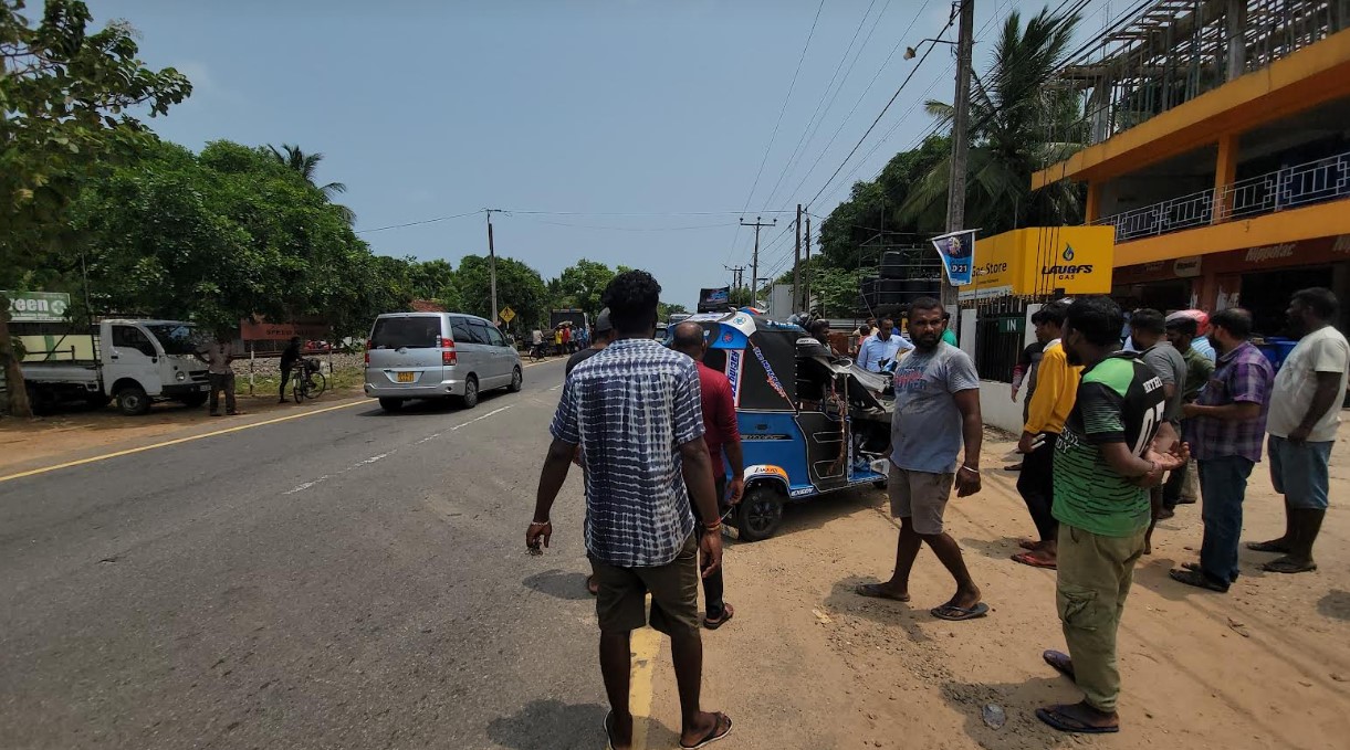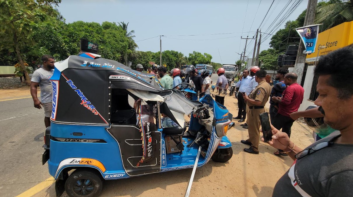 கனரக வாகனம் வீதியின் ஓரமாக நின்று , வீதிக்கு ஏற்ற முற்பட்ட வேளை , பின் புறமாக வந்த முச்சக்கர வண்டி வேக கட்டுப்பாட்டை இழந்து வாகனத்துடன் மோதி விபத்துக்கு உள்ளானது.