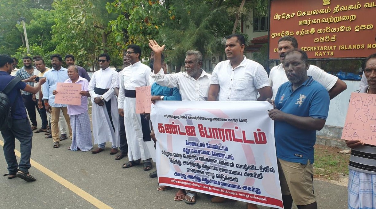 ஊர்காவற்துறையில் அமைந்துள்ள மதுபான சாலையை அகற்ற கோரி போராட்டம்