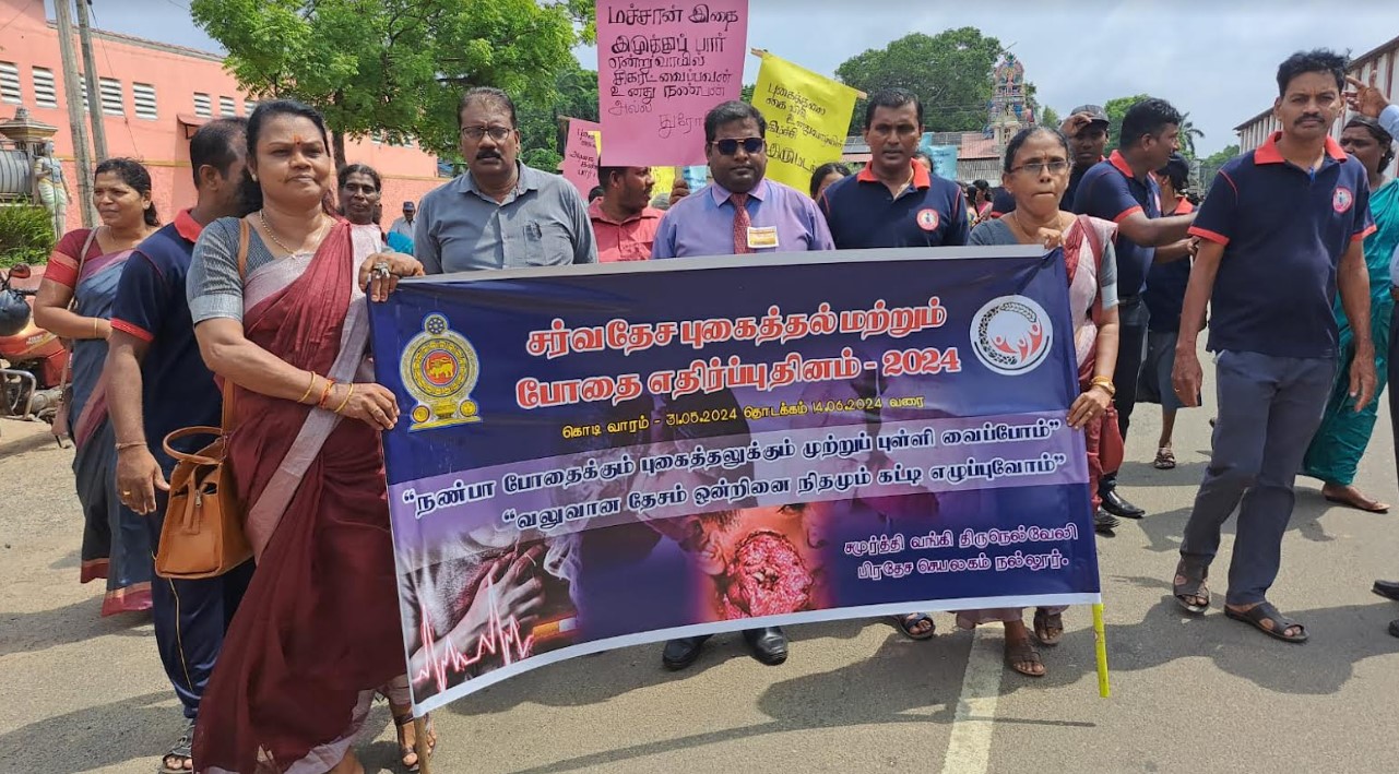 சர்வதேச புகைத்தல் மற்றும் போதை எதிர்ப்பு தினத்தை முன்னிட்டு நல்லூர் பிரதேச செயலக சமுர்த்தி பிரிவின் ஏற்பாட்டில் இப் பேரணி இன்று வெள்ளிக்கிழமை நடைபெற்றது.