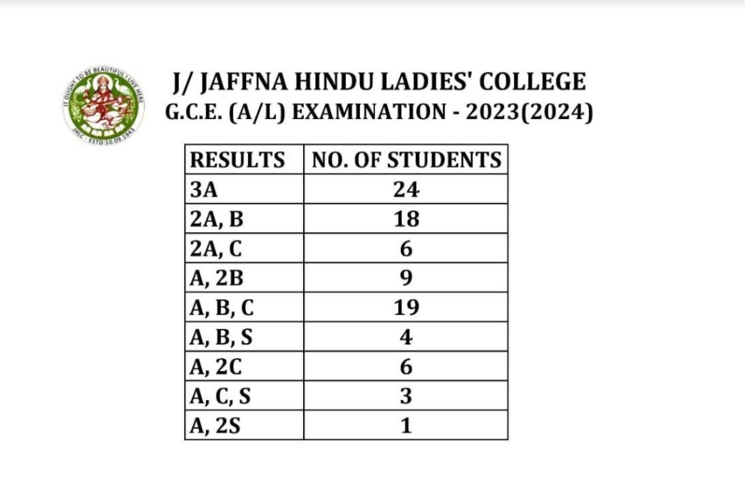 யாழ். இந்து மகளிர் கல்லூரியில் இருந்து பரீட்சைக்குத் தோற்றியவர்களில் 90 மாணவிகள் விஞ்ஞான, கலை, வணிகவியல் துறைகளில் சிறப்புப் பெறுபேறுகளைப் பெற்று பல்கலைக்கழகங்களுக்கு அனுமதி பெறுகின்றனர்.