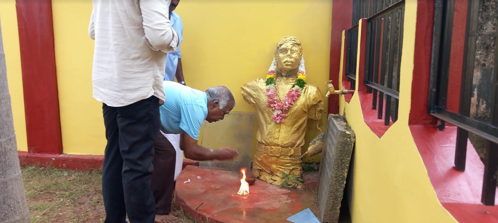 இராணுவத்தினால் அழிக்கப்பட்ட தியாகி பொன் சிவகுமாரனின் சிலையில் அஞ்சலி