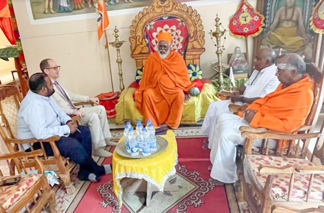 யாழ்ப்பாணத்திற்கு விஜயம் மேற்கொண்டுள்ள இலங்கைக்கான கனேடிய உயர்ஸ்தானிகர் “எரிக் வாஸ்” (Eric Walsh) இந்துசமயத் தலைவர்களை இன்றைய தினம் வெள்ளிக்கிழமை நல்லை திருஞானசம்பந்தர் ஆதீனத்தில் சந்தித்து கலந்துரையாடினார்