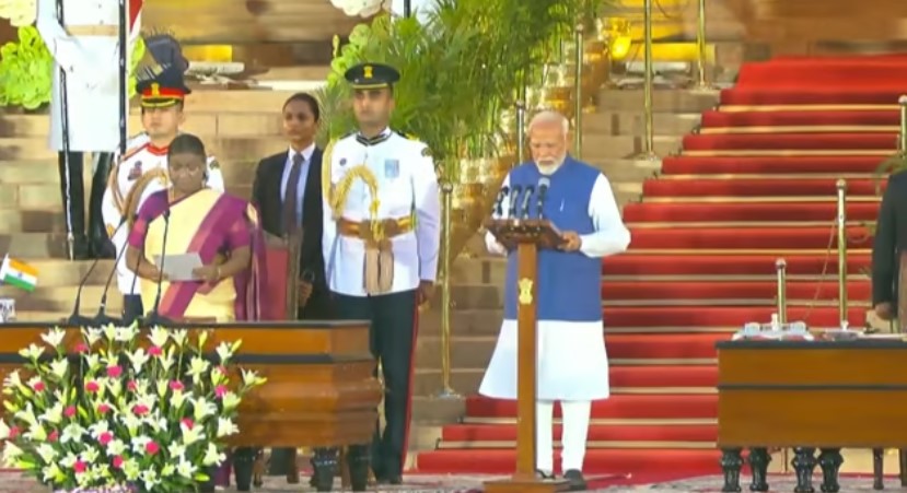 நாட்டின் பிரதமராக 3வது முறையாக நரேந்திர மோடி இன்று (ஜூன் 9) பதவியேற்றுக்கொண்டார். அவருக்கு குடியரசுத் தலைவர் திரெளபதி முர்மு பதவிப் பிரமாணம் செய்து வைத்தார்.