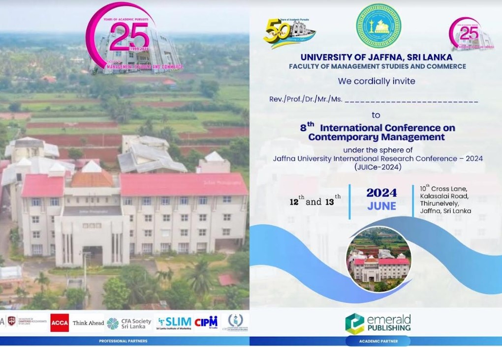 யாழ்ப்பாணப் பல்கலைக்கழக முகாமைத்துவக் கற்கைகள் மற்றும் வணிக பீடத்தின் ஏற்பாட்டில் நாளை 12 மற்றும் நாளை மறுதினம் 13 ஆகிய இரு தினங்களும் இந்த ஆய்வு மாநாடு இடம்பெறவுள்ளது.