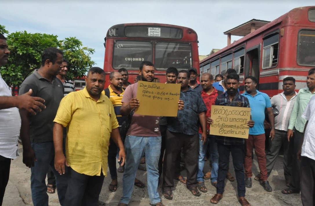 இலங்கை போக்குவரத்து சபை கல்முனை சாலை ஊழியர்கள் சாலைக்கு முன்பாக இன்று(13) போராட்டத்தில் ஈடுபட்டு வருகின்றனர்.