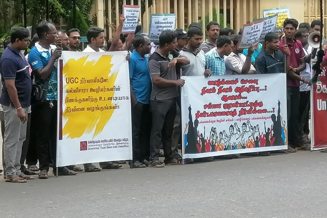 யாழ். பல்கலைக்கழக ஊழியர் சங்கம் யாழ். பல்கலைக்கழக பிரதான நுழைவாயிலில் இந்த கவனயீர்ப்பு போராட்டத்தினை முன்னெடுத்தனர்.