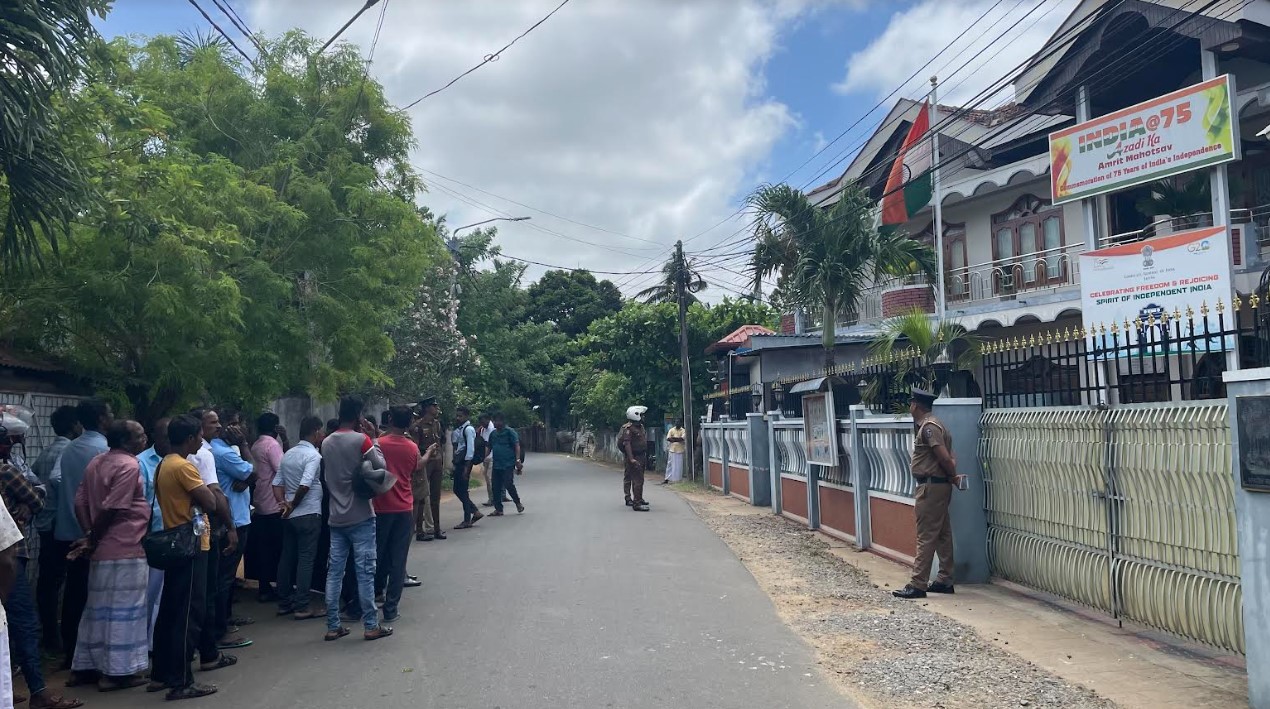 யாழ்ப்பாணம் மருதடி வீதியில் உள்ள இந்திய துணைத்தூதரகம் முன்பாக இன்றைய தினம் செவ்வாய்க்கிழமை காலை போராட்டத்தை முன்னெடுத்தனர்.