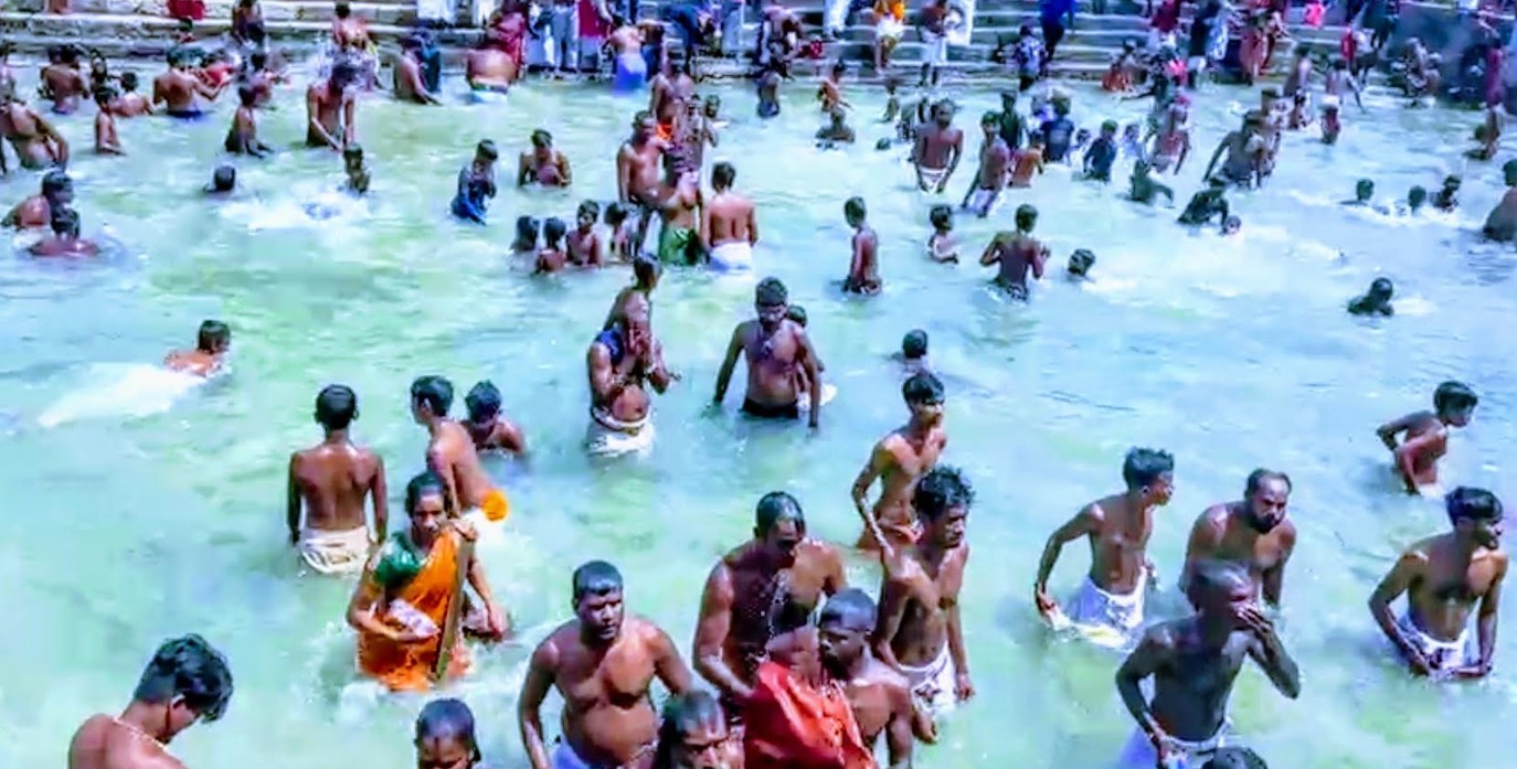 ஆலயத்தில் காலை இடம்பெற்ற விசேட பூஜை வழிபாடுகளை தொடர்ந்து , நாகபூசணி அம்மன் , பிள்ளையார் மற்றும் முருகன் சகிதம் கங்காதரணியில் தீர்த்தமாடினார்.