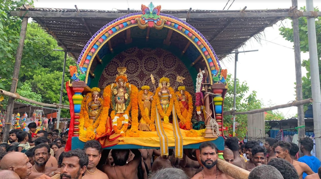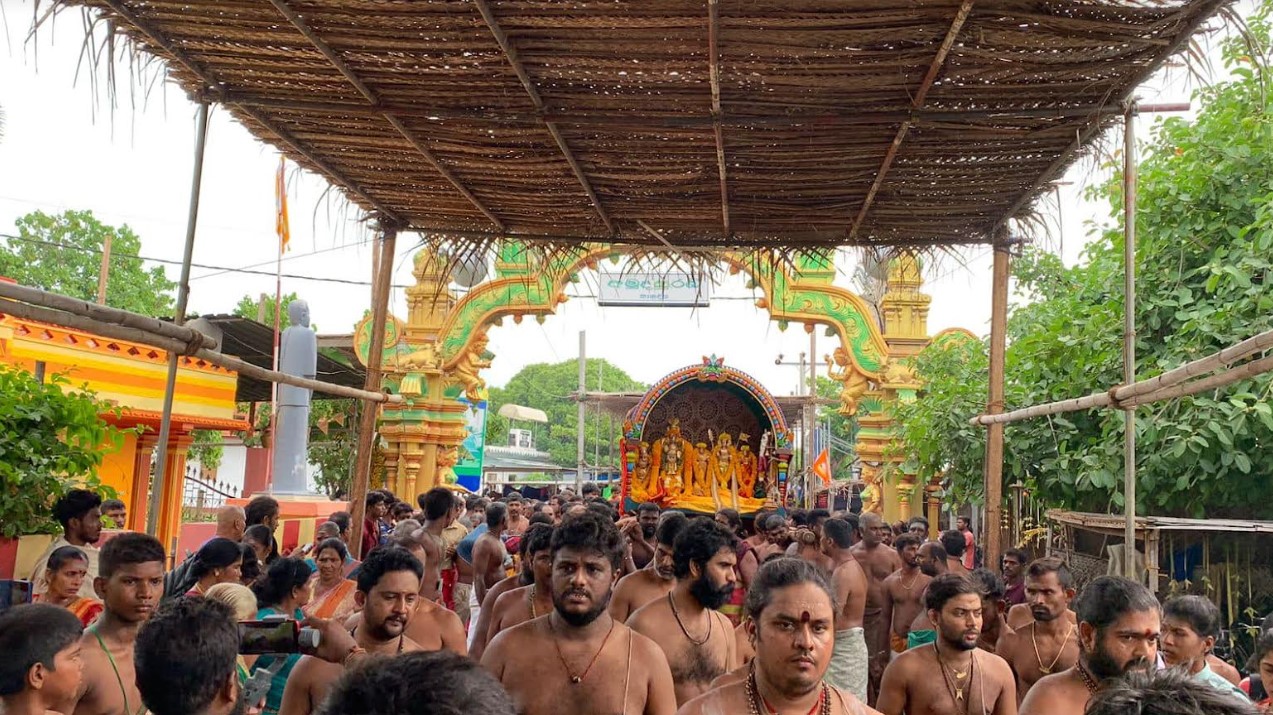 நூற்றுக்கணக்கான பக்தர்கள் சூழ ஆலயத்தில் இருந்து தீர்த்தக்கரைக்கு எழுந்தருளினார்.
