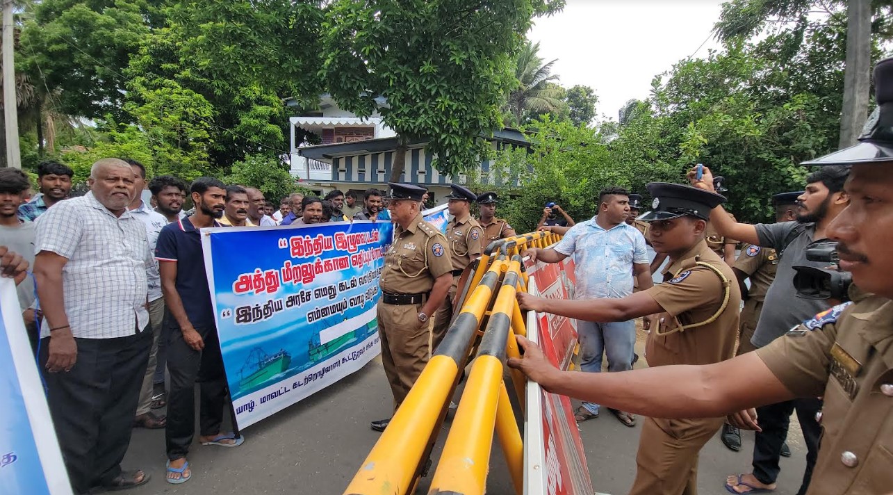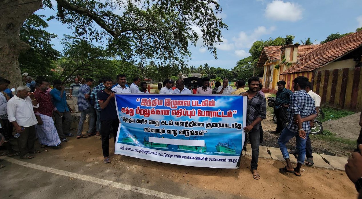 யாழ் மாவட்ட கடற்றொழிலாளர்கள் கூட்டுறவு சங்க சமாசங்களின் சம்மெளனத்தினரால் இன்றைய தினம் திங்கட்கிழமை யாழ்ப்பாணம் மருதடி சந்தியில் இருந்து ஆரம்பிக்கப்பட்ட குறித்த போராட்டம் இந்திய துணை தூதரகத்தை நோக்கி சென்றது