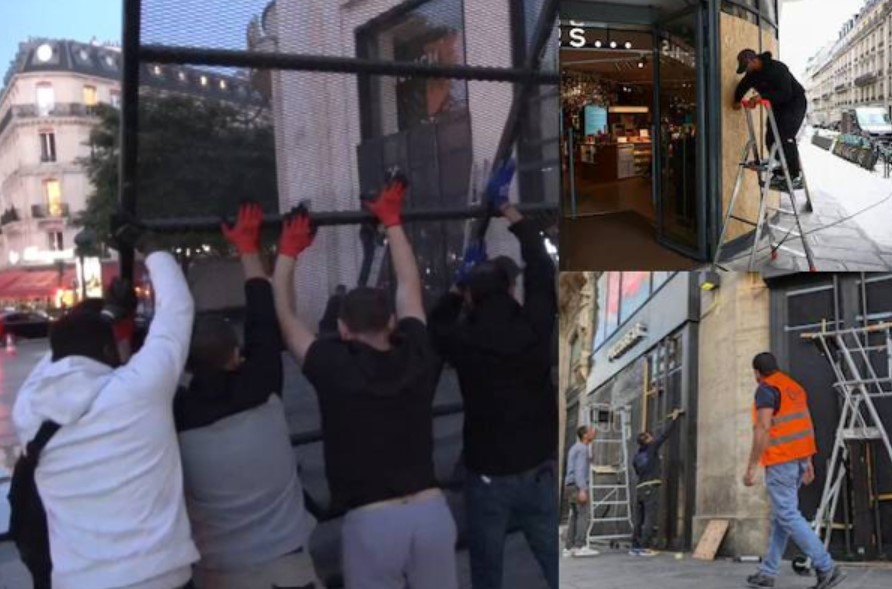 இந்த நிலையில், தலைநகர் பாரிஸில் உள்ள வணிக உரிமையாளர்கள் வன்முறையை எதிர்கொள்ள தயாராகும் வகையில், தங்கள் கடைகளுக்கு உலோகத் தகடுகளைக் கொண்டு வேலி போன்று அமைத்து வருகின்றனர்.