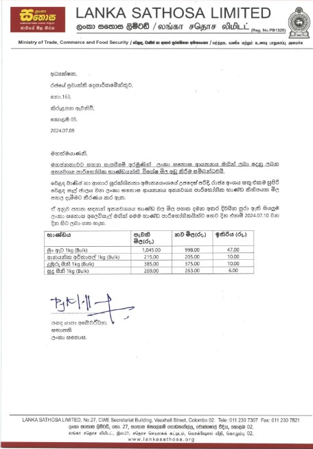 நேற்று முதல் நடைமுறைக்கு வரும் வகையில் இந்த விலை குறைப்பு லங்கா சதொச நிறுவனத்தினால் மேற்கொள்ளப்பட்டுள்ளது.