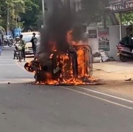 நெல்லியடியில் வீதியில் தீக்கிரையான முச்சக்கர வண்டி