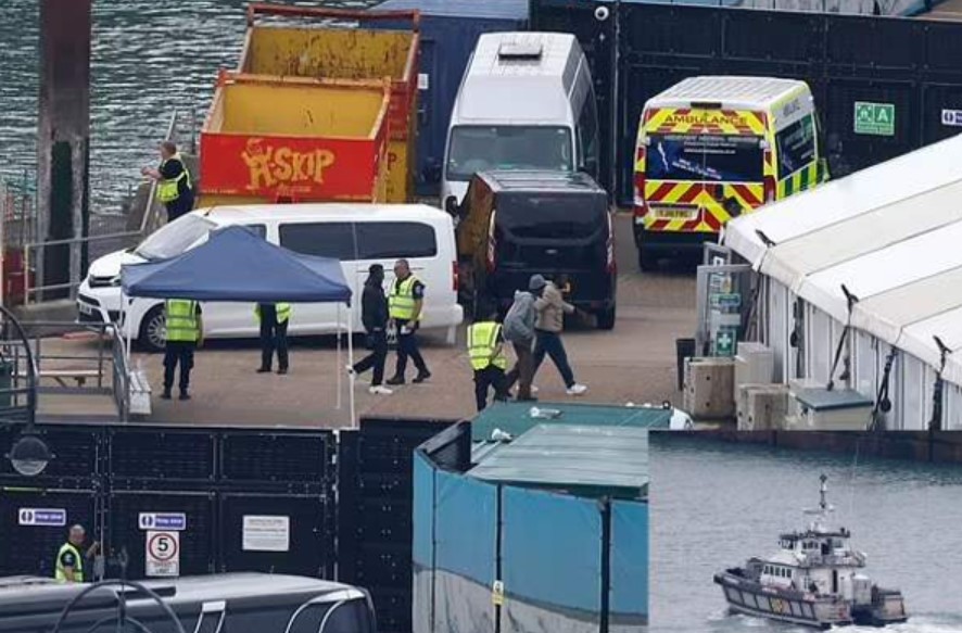 பிரித்தானிய எல்லைப்படையினரால் கால்வாயைக் கடந்து வந்த 300 புலம்பெயர்ந்தோர் டோவர் துறைமுகத்தில் சேர்ந்தனர்.
