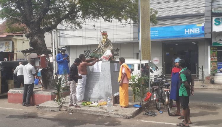 யாழ்ப்பாணம் மத்திய பேருந்து நிலையத்திற்கு முன்பாகவுள்ள நவாலியூர் சோமசுந்தரப் புலவரின் சிலையடியில் இன்று(17) காலை குறித்த நிகழ்வு இடம்பெற்றது.