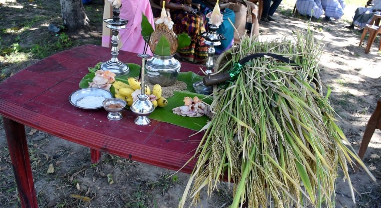 கிளிநொச்சியில் பரசூட் முறையில் விதைக்கப்பட்ட நெல் அறுவடை விழா