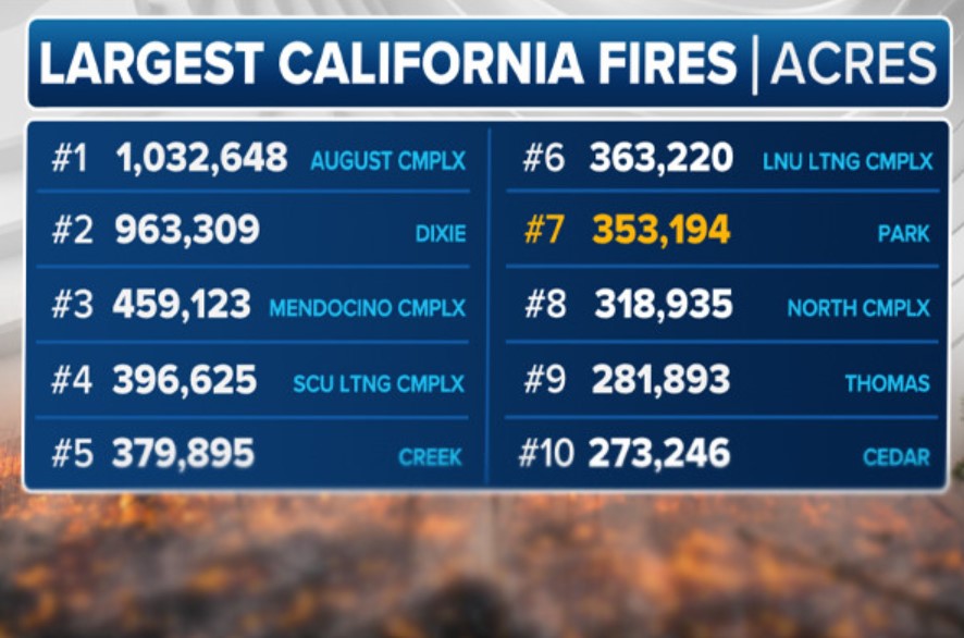 மேலும், இது கலிபோர்னியாவில் ஏற்பட்டுள்ள ஏழாவது மிகப்பெரிய காட்டுத்தீ என தெரியவந்துள்ளமை குறிப்பிடத்தக்கது.