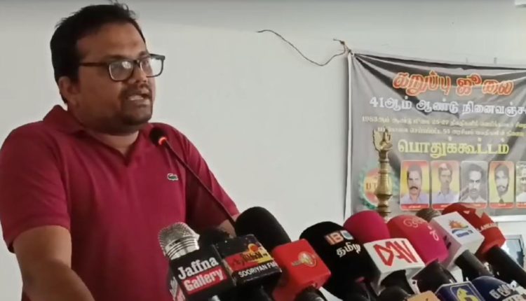 தந்தை செல்வா கேட்போhர் கூடத்தில் ஜனநாயகத்தமிழ்த் தேசியக் கூட்டமைப்பின் ஏற்பாட்டில் சனிக்கிழமை நடைபெற்ற கறுப்பு யூலை நினைவேந்தலில் உரையாற்றும் போதே இவ்வாறு தெரிவித்தார்.
