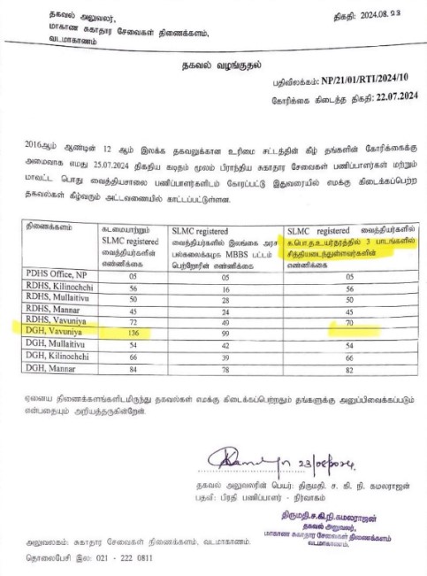 வடமாகாண சுகாதார திணைக்களத்திற்கு வழங்கப்பட்ட தகவல் அறியும் உரிமை சட்டத்திற்கு வழங்கப்பட்ட தகவலூஉடாகவே 41 மருத்துவர்கள் உயர்தர பரீட்சையில் சித்தியடையவில்லை என சமூக ஊடகங்களில் சர்ச்சைக்குரிய தகவல் பகிரப்பட்டு வருகின்றது.