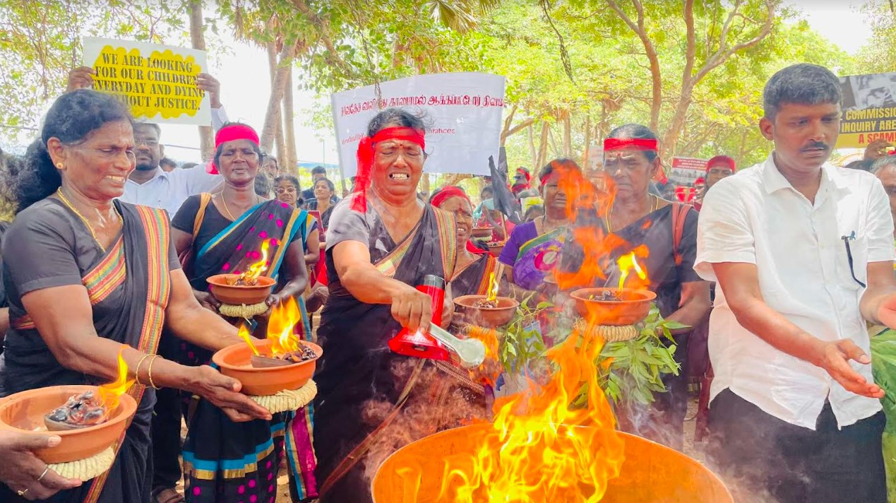 பேரணியின் போது, காணாமல் ஆக்கப்பட்டவர்களின் உறவினர்கள் தீச்சட்டி ஏந்தி சென்றதுடன் , பேரணியின் முடிவில் , அக்கினி சாட்சியாக தமக்கான நீதி கிடைக்கும் வரையில் போராட்டங்களை தொடர்வோம் என உறுதி எடுத்தனர்.
