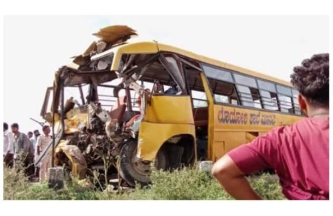 இந்திய மாநிலம் கர்நாடகாவில் பாடசாலை வாகனம் விபத்திற்குள்ளானதில் 2 மாணவர்கள் உயிரிழந்த சம்பவம் சோகத்தை ஏற்படுத்தியது.