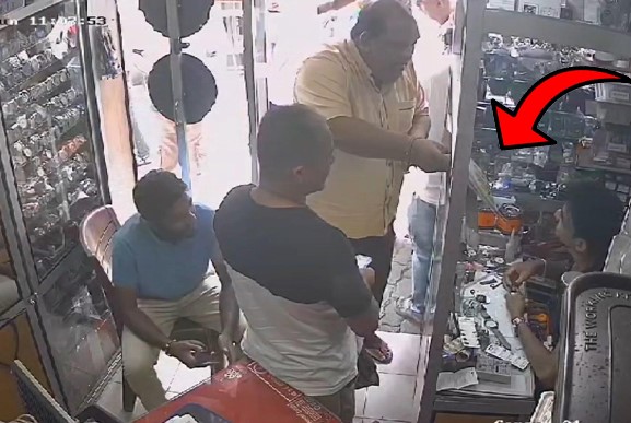 பிரதான கட்சி ஒன்றின் துண்டுப் பிரசுரத்தை வாங்க மறுத்த வர்த்தகர் ஒருவரை கட்சியின் நாவலப்பிட்டி தொகுதி அமைப்பாளர் தாக்குவது கடையில் பொருத்தப்பட்டிருந்த பாதுகாப்பு கமராவில் பதிவாகியுள்ளது.