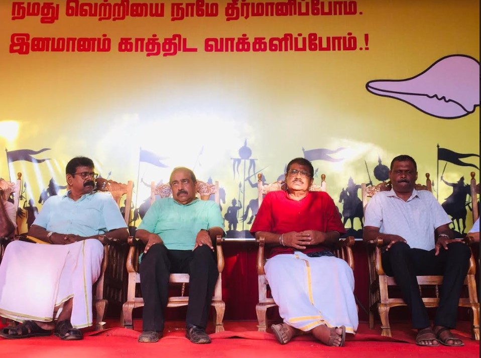 நல்லூர் சங்கிலியன் தோப்பில் நடைபெற்ற கூட்டத்தில், தமிழ் பொது வேட்பாளர் பா.அரியநேத்திரன், பாராளுமன்ற உறுப்பினர் த.சித்தார்த்தன்,